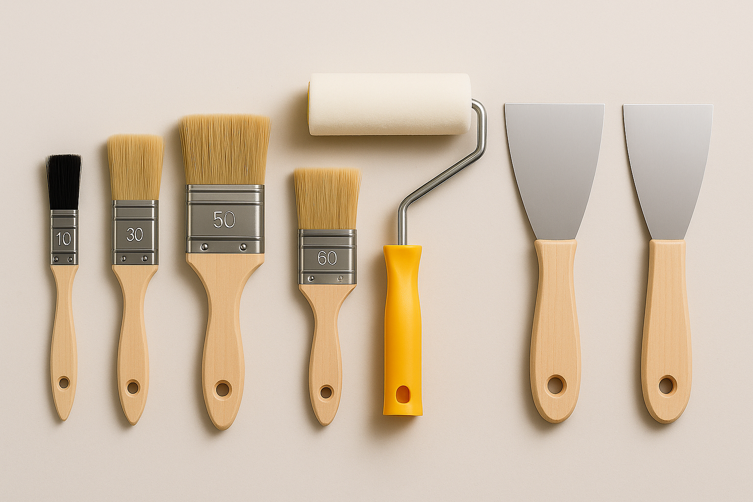 Tilbehør til malerarbejde – spande, spartler, koste og mere